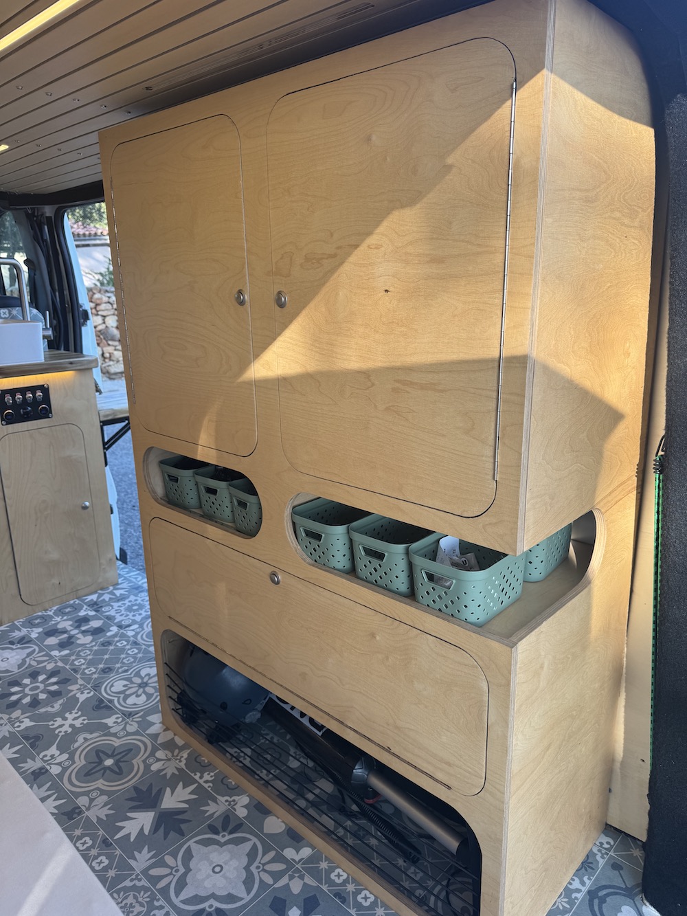 Chaque meuble est fabriqué, assemblé et posé directement dans le van du client à l’atelier.
